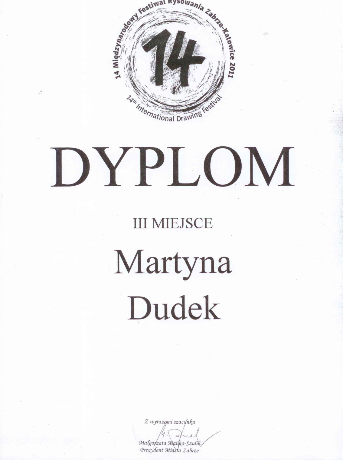 Martyna Dudek była uczennicą naszego gimnazjum, teraz chodzi do liceum. Ma wiele osiągnięć plastycznych nie tylko na terenie miasta, ale również województwa czy kraju. Jak mówi jej opiekunka - nauczycielka plastyki pani E. Dyl: „nie ma rzeczy, których nie potrafiłaby przedstawić”. Za swoje prace zdobyła liczne nagrody, najważniejsze to: III miejsce w 14 Międzynarodowym Festiwalu Rysowania, wyróżnienie w XV i XVI Konkursie Rysowania oraz I miejsce w Wojewódzkim Konkursie pt. „Karykatura Ślązaka”. Martyna udziela się również aktorsko uczestnicząc w pracach szkolnego koła teatralnego, jak również naszego chóru.