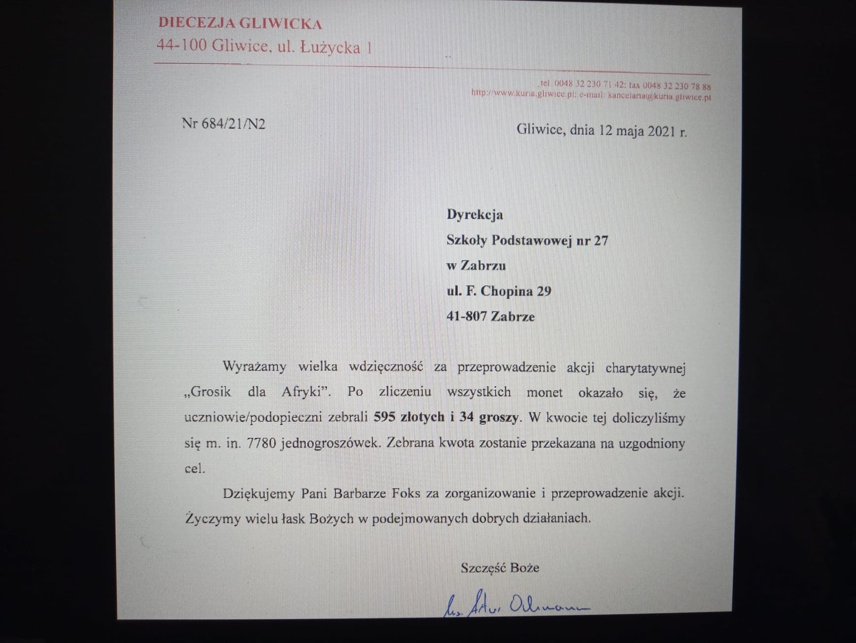 Podziękowania!Utworzono: 20 maja 2021 | Drukuj | E-mail Za dobre serce, które pochyla się nad tymi, którzy potrzebują pomocy. Za wrażliwą duszę, która nakłania do czynienia dobra, za bezinteresowną pomoc i życzliwość wszystkim darczyńcom dziękujemy. p. B. Foks Poprzedni artykuł Następny artykuł